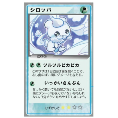 モンスターの技名やカードの獲得条件を通して、遊びながら自然とむし歯予防の知識とブラッシングの技術が身につく仕組みです。