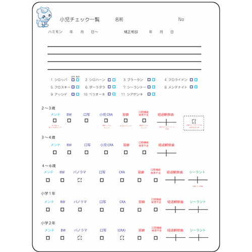 ハミガキモンスター図鑑をお渡しして終わりではなく、メインテナンスのたびにお子さまの成長に合わせたチェックを定期的に行っていきます。